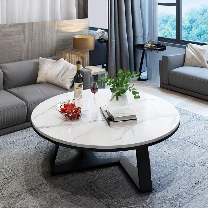 Với những căn hộ có phòng khách rộng hơn, việc thay thế bàn tròn đơn bằng các mẫu bàn mặt đá sofa dạng đôi hoặc hình chữ nhật sẽ giúp lấp đầy không gian một cách tinh tế.