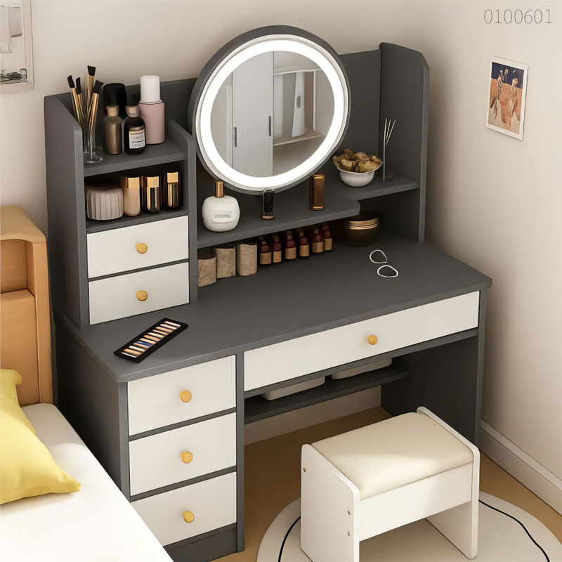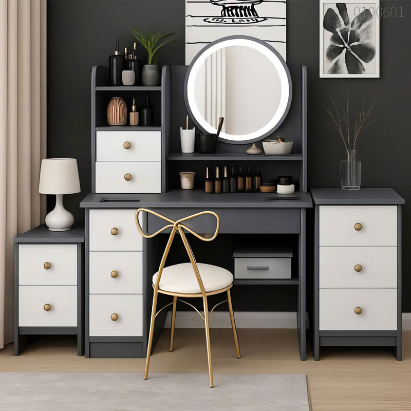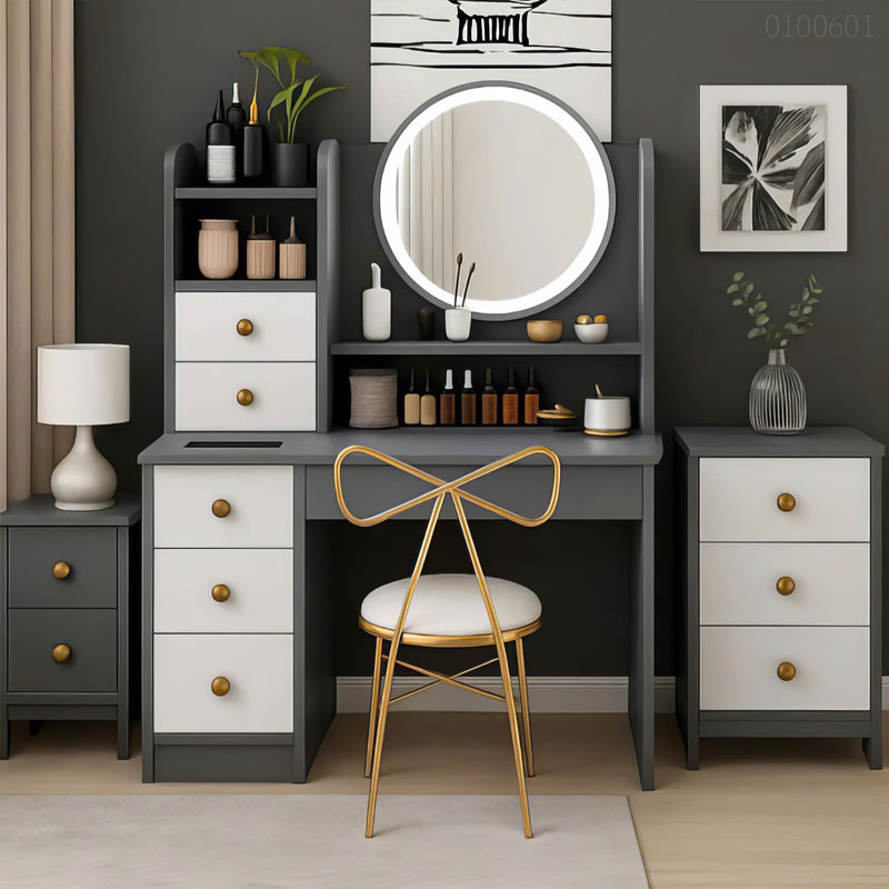 Bên cạnh độ bền vượt trội, sự tinh tế trong từng đường nét bo góc và hệ thống ray ngăn kéo giảm chấn êm ái chính là lý do khiến bàn trang điểm gỗ công nghiệp Enzo trở thành 1 trong những mẫu tủ bàn trang điểm đẹp được săn đón nhất năm nay tại Instock.