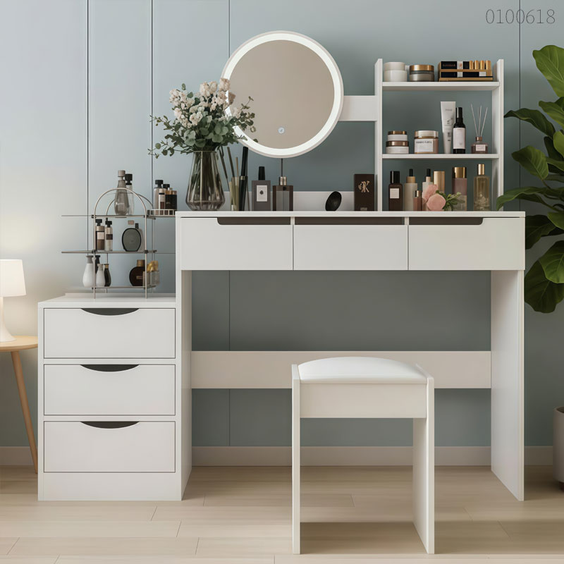 Nhờ thiết kế thông minh, bàn trang điểm gỗ công nghiệp Kimo giúp bạn giải quyết mọi vấn đề về diện tích và lưu trữ. Tuy nhiên để tìm được một chiếc bàn trang điểm có kích thước và màu sắc chuẩn nhất cho phòng ngủ, bạn có thể xem thêm các mẫu bàn phấn trang điểm đang bán chạy tại Instock. Việc chọn đúng mẫu không chỉ giúp góc làm đẹp gọn gàng mà còn giúp căn phòng trông sang trọng và có gu hơn hẳn.
