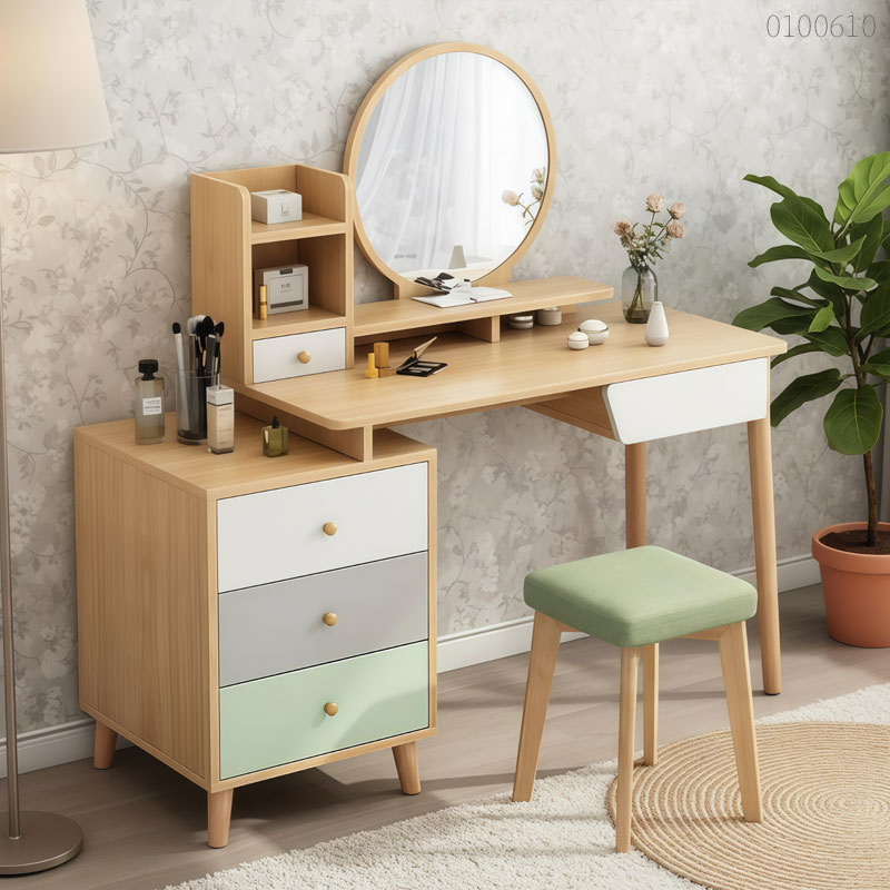 Việc kết hợp chất liệu gỗ MDF chống ẩm và lớp sơn màu 2K giúp bàn Myra duy trì vẻ ngoài tươi mới bất chấp sự thay đổi của thời tiết. Nếu bạn quan tâm đến độ bền và tính thẩm mỹ lâu dài, hãy tham khảo những mẫu bàn phấn đẹp được tuyển chọn kỹ lưỡng về vật liệu tại Instock.