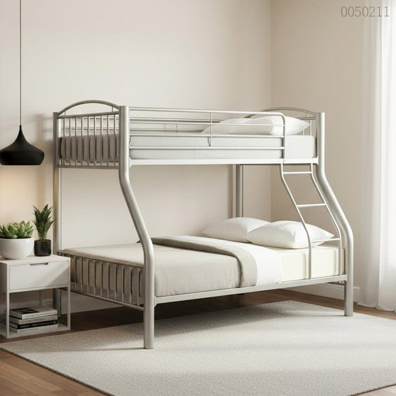 Giường inox 2 tầng Lowen là giải pháp thực tế cho phòng ngủ hẹp nhờ kết cấu tầng lệch thông minh. Tầng dưới rộng rãi giúp bạn nằm thoải mái, trong khi tầng trên thu hẹp giúp không gian bớt ngột ngạt. Với trụ chính từ ống inox phi 60 siêu lớn, giường cực kỳ vững chãi, không hề rung lắc hay phát ra tiếng kêu khi xoay người. Cầu thang dạng vát nghiêng giúp việc leo trèo tự nhiên và an toàn hơn hẳn thang đứng. Chất liệu inox 304 xịn giúp khung giường luôn sáng sạch, không bao giờ lo han gỉ hay bong tróc như giường sắt sơn thông thường. Kiểu dáng uốn vòm thanh thoát cùng màu bạc trung tính rất dễ phối đồ nội thất, mang lại cảm giác hiện đại và sạch sẽ cho căn phòng.