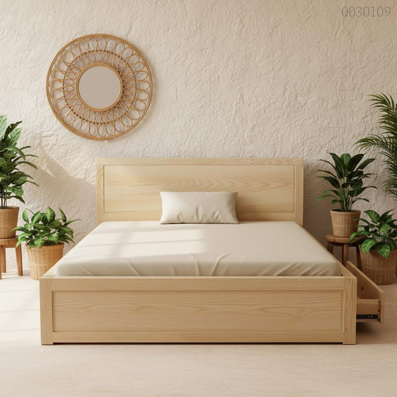 - Tối ưu không gian lưu trữ: Hệ thống hai ngăn kéo lớn tích hợp bên hông giường giúp bạn sắp xếp đồ đạc cá nhân gọn gàng và khoa học nhất.