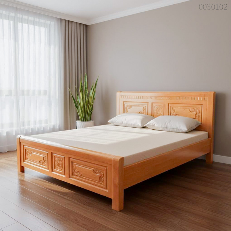Giường ngủ gỗ sồi Uban là lựa chọn lý tưởng giúp căn phòng bừng sáng nhờ tông màu vàng cát và vân gỗ elip tự nhiên cực kỳ bắt mắt. Điểm nhấn nằm ở đầu giường với các ô chữ nhật đục rãnh sâu, tạo độ khối sang trọng như những cánh cửa gỗ truyền thống. Khung vai giường dày dặn cùng chân trụ vuông cao 25 - 30cm giúp gầm giường luôn thông thoáng, thuận tiện vệ sinh hàng ngày. Đặc biệt, mọi góc cạnh đều được mài nhẵn và bo tròn tinh tế, đảm bảo an toàn, tránh đau rát khi vô tình va quệt. Đây chính là chiếc giường bền bỉ, dễ phối đồ, mang lại giấc ngủ ngon và sự an tâm cho mọi gia đình.