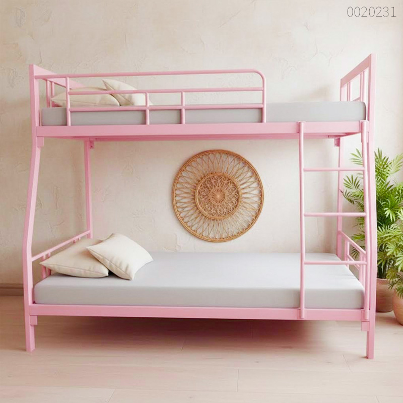 Giường sắt 2 tầng Benny là lựa chọn hàng đầu cho phòng ngủ trẻ em nhờ thiết kế thang leo bậc bản lớn siêu an toàn, giúp các bé di chuyển vững vàng. Khung sắt hộp kẽm 1.2mm chắc chắn, chịu tải trọng đến 300kg cùng chân thoải phía trước giúp chống rung lắc tuyệt đối và tạo độ bám sàn cực tốt. Với sắc hồng trẻ trung hoặc đen thanh lịch phối cùng lớp sơn tĩnh điện mịn màng, sản phẩm mang đến không gian sống hiện đại, năng động cho các bạn nhỏ. Gầm giường cao 30cm còn giúp tối ưu diện tích lưu trữ và dễ dàng vệ sinh sàn nhà.