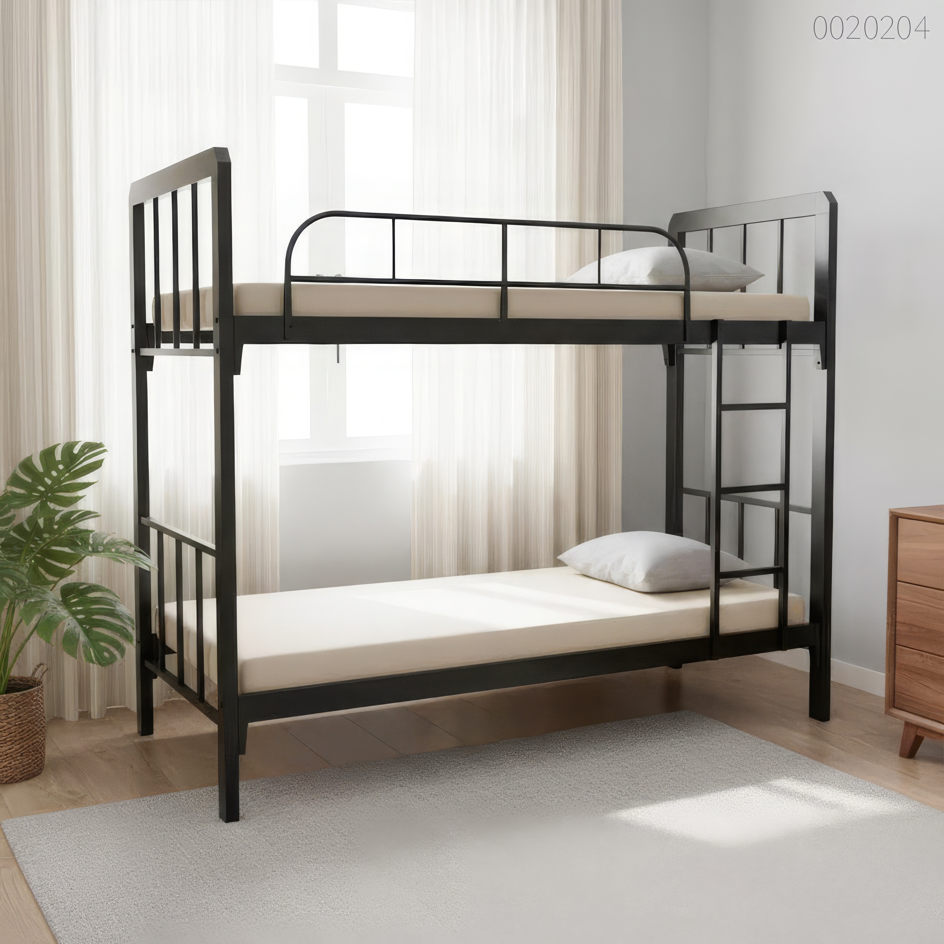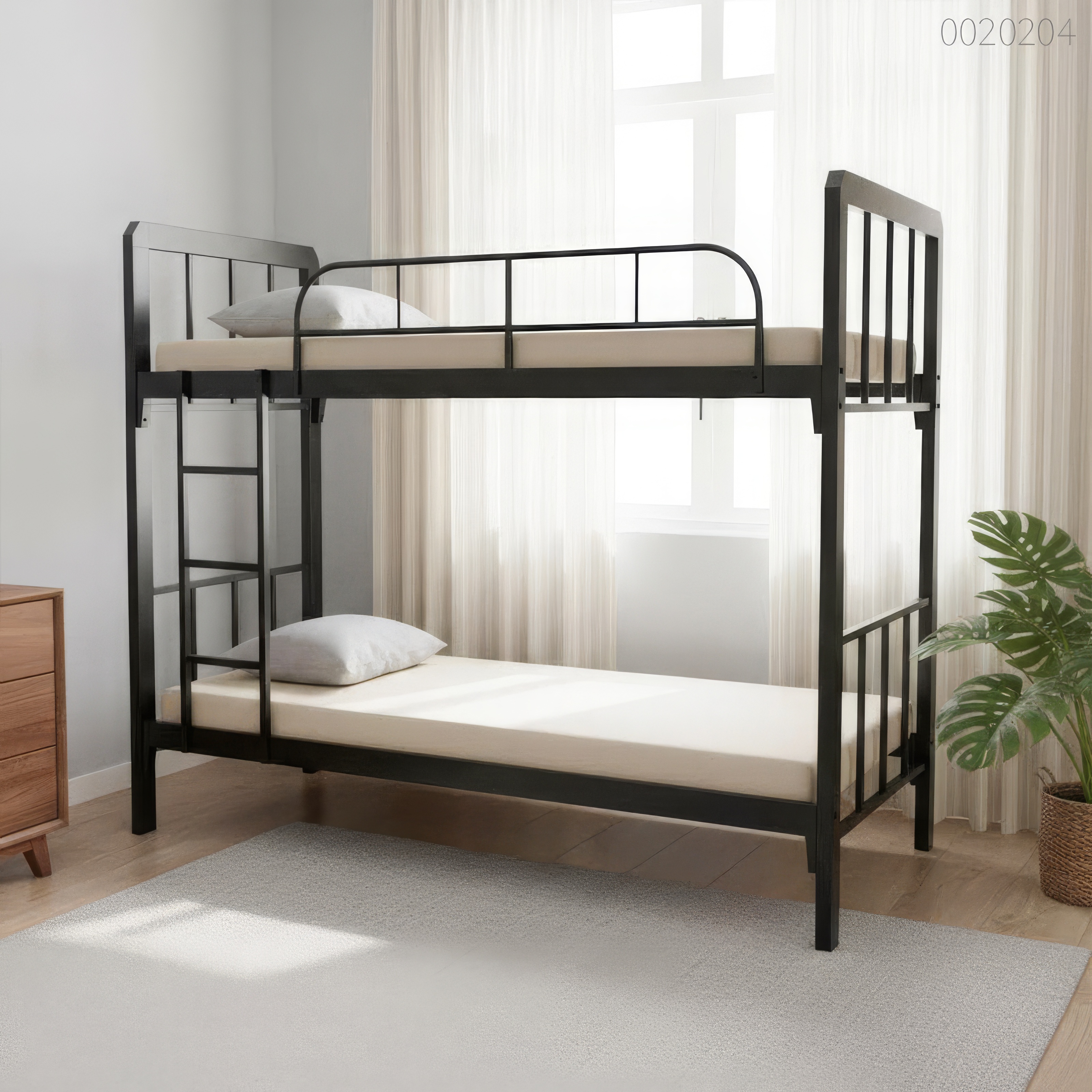 Khám phá giải pháp tối ưu không gian sống với giường sắt 2 tầng Jeno biểu tượng của phong cách Industrial hiện đại và tối giản. Chế tác từ sắt hộp kẽm 30x60 dày 1.2mm, Jeno sở hữu kết cấu vuông vức siêu vững chãi với tải trọng lên đến 300kg. Lớp sơn tĩnh điện đen mờ sang trọng không chỉ chống rỉ sét mà còn tạo điểm nhấn mạnh mẽ cho phòng ngủ. Với thiết kế cầu thang đứng thông minh và hệ vạt nan sắt thoáng khí, sản phẩm là lựa chọn hoàn hảo để nhân đôi tiện ích cho căn hộ hay ký túc xá. Đầu tư vào Jeno chính là đầu tư cho sự an toàn và giấc ngủ trọn vẹn của gia đình bạn.
