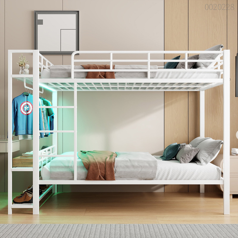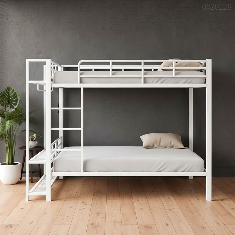 Sắp xếp cuộc sống ngăn nắp chưa bao giờ đơn giản hơn với giường sắt 2 tầng Leno. Mẫu giường này thay thế hoàn hảo cho tủ quần áo và kệ giày cồng kềnh nhờ hệ thống giá treo và ngăn chứa đồ thông minh tích hợp ngay dưới gầm. Khoảng cách gầm cao 30cm giúp bạn dễ dàng vệ sinh phòng bằng robot hút bụi, duy trì không gian luôn sạch thoáng. Đây là lựa chọn lý tưởng cho học sinh, sinh viên và người đi làm bận rộn cần một không gian sống khoa học.