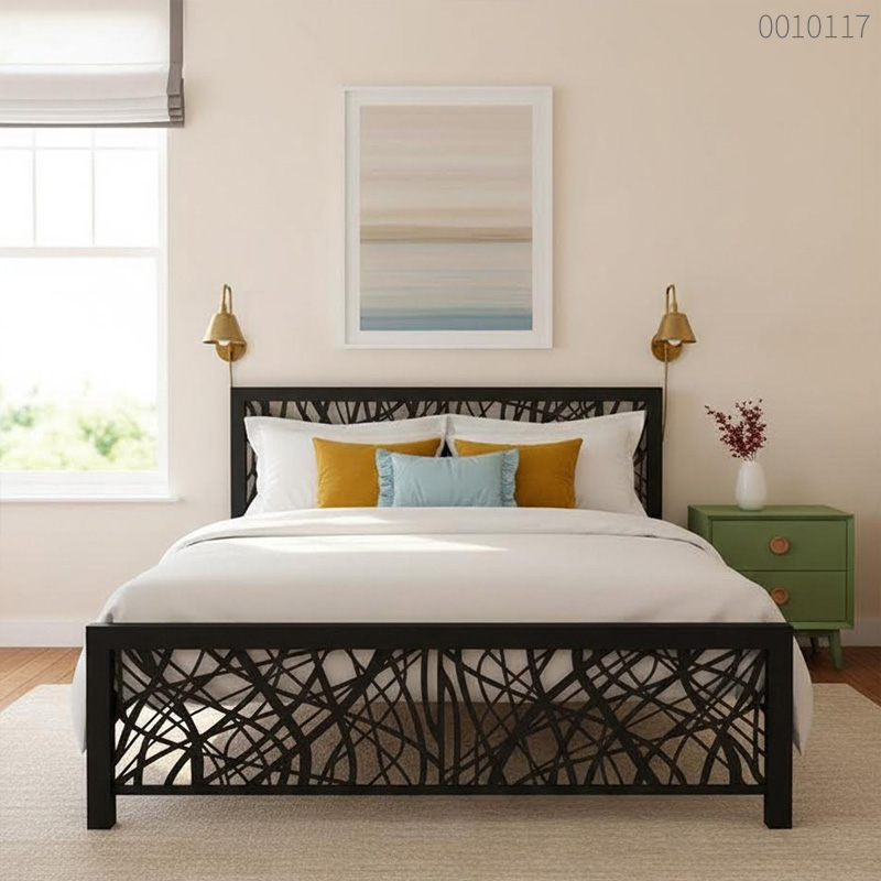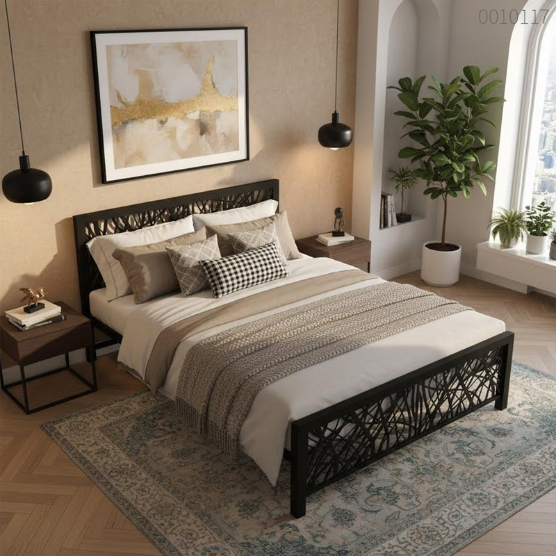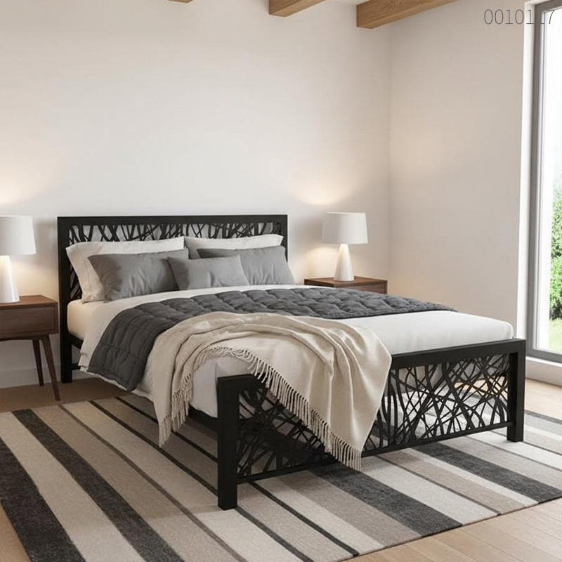 - Thiết kế nghệ thuật độc bản: Họa tiết nhánh cây được cắt bằng công nghệ CNC tiên tiến, tạo điểm nhấn thị giác mạnh mẽ, thoát khỏi sự đơn điệu của giường sắt truyền thống.