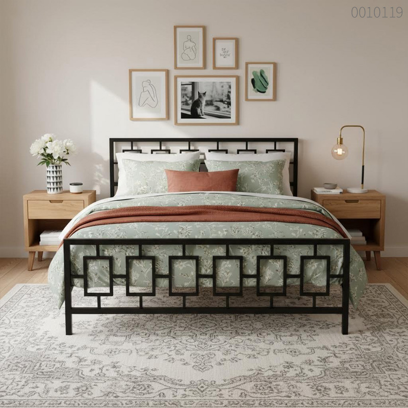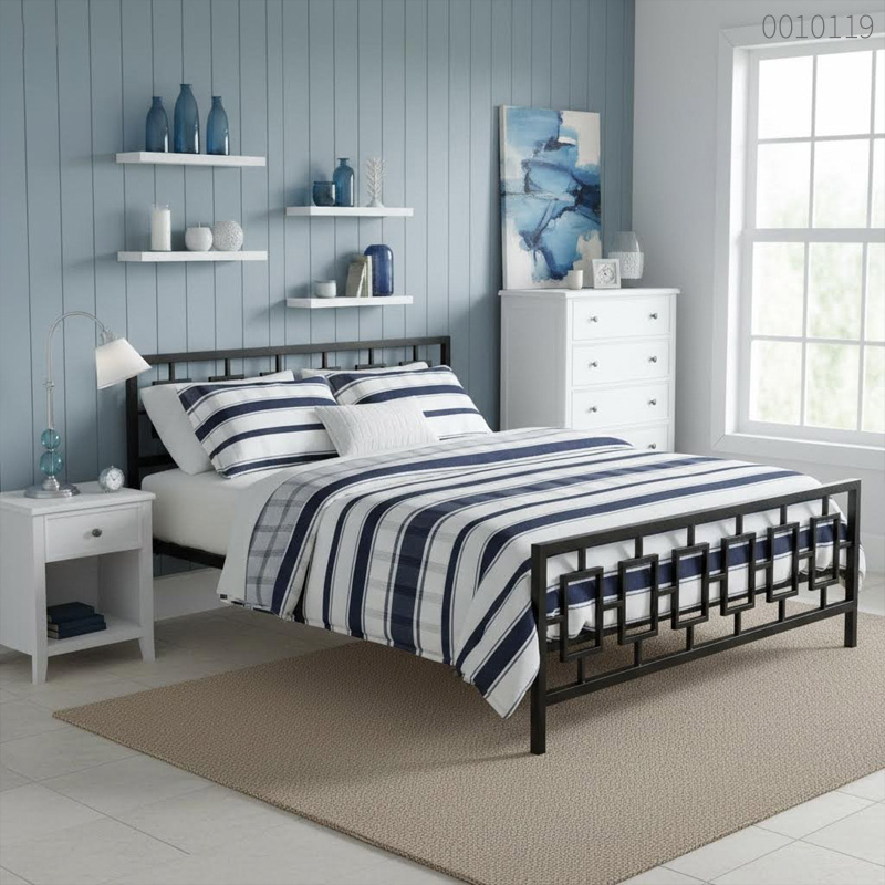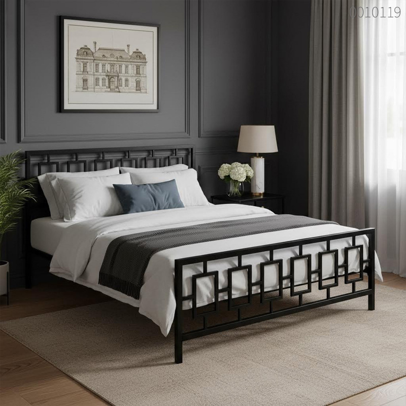 - Thiết kế hình học độc đáo: Họa tiết lưới chữ nhật lồng ghép ở đầu và đuôi giường mang lại phong cách Geometric Modern đầy nghệ thuật, không đại trà.