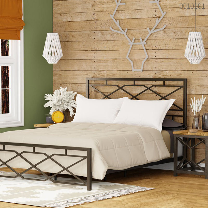 - Tạo điểm nhấn thẩm mỹ hiện đại: Họa tiết hình học cắt chéo tinh tế ở đầu và đuôi giường, phù hợp với không gian trẻ trung.