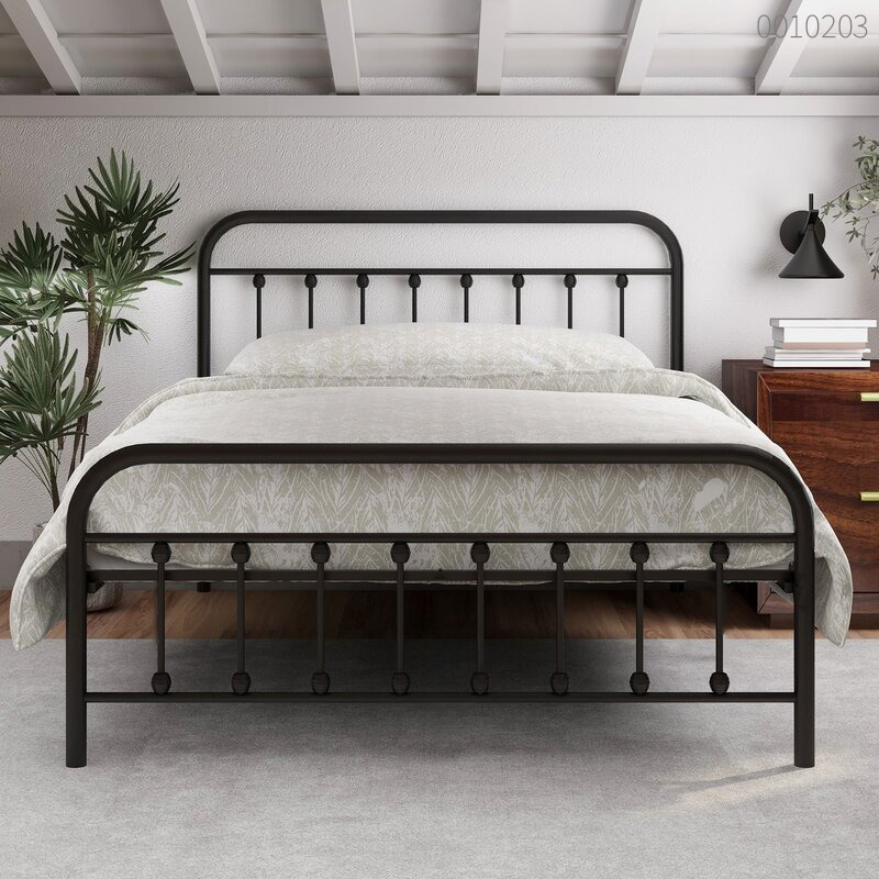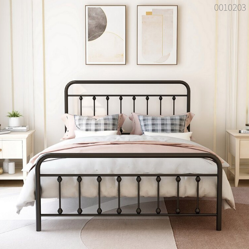 - Tối ưu không gian mở: Khung sắt tròn thanh mảnh và gầm cao thoáng giúp phòng ngủ nhỏ trông rộng rãi hơn, không bị bí bách.
