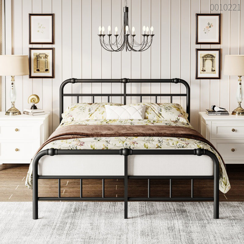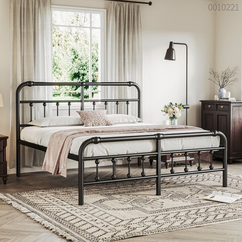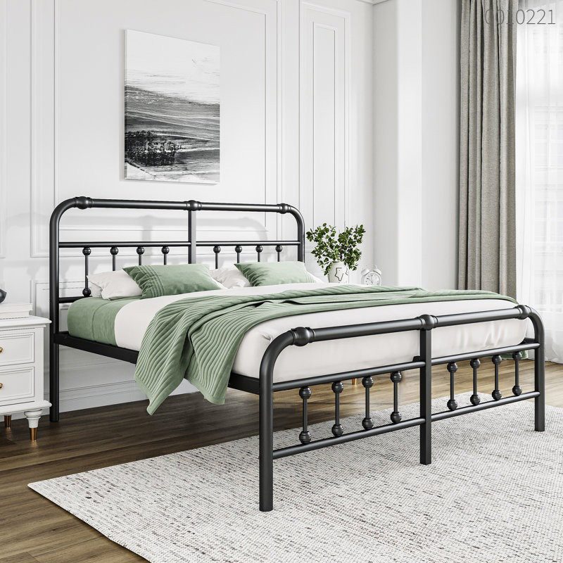 - Vẻ đẹp tân cổ điển: Đầu giường uốn vòm kết hợp nan sắt núm tròn tạo điểm nhấn nghệ thuật.