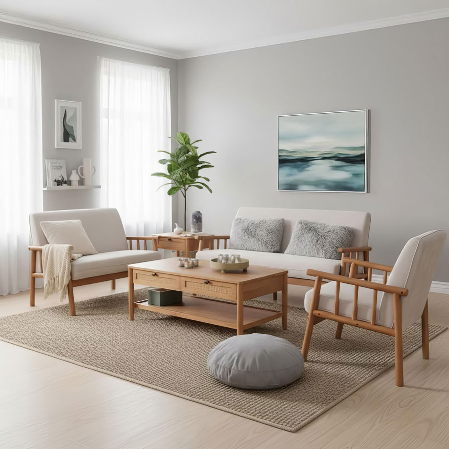 | Số lượng món | 4 món: 1 băng dài, 1 ghế đôi, 1 ghế đơn và 1 bàn trà |