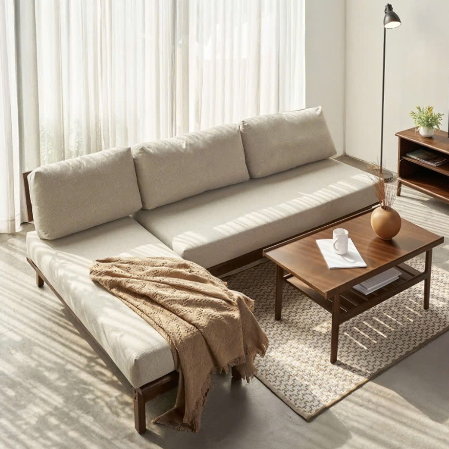 Bên cạnh tông màu be sáng, Instock còn cung cấp nhiều mẫu sofa gỗ với bảng màu nệm phong phú từ trung tính đến nổi bật để phản chiếu đúng cá tính gia chủ.