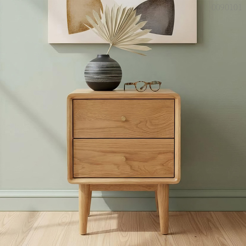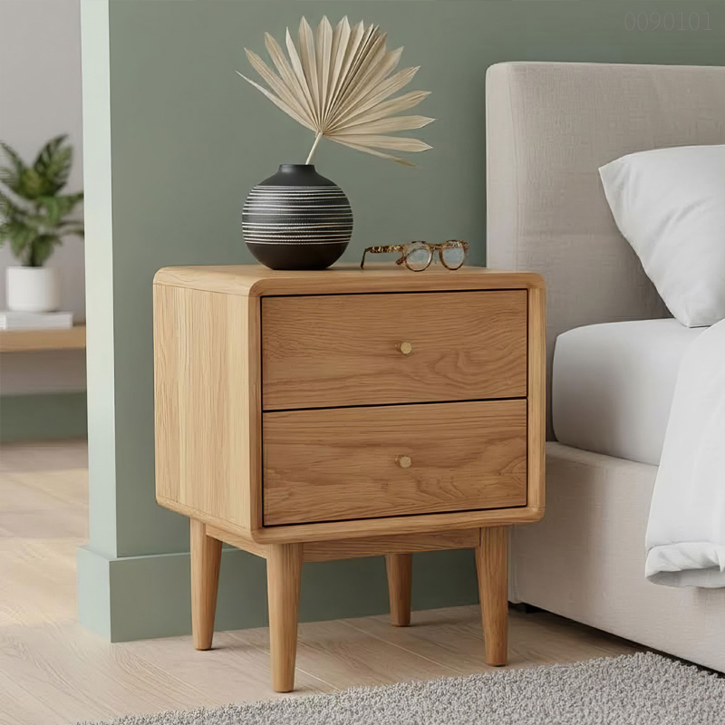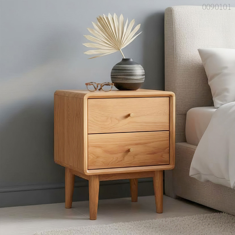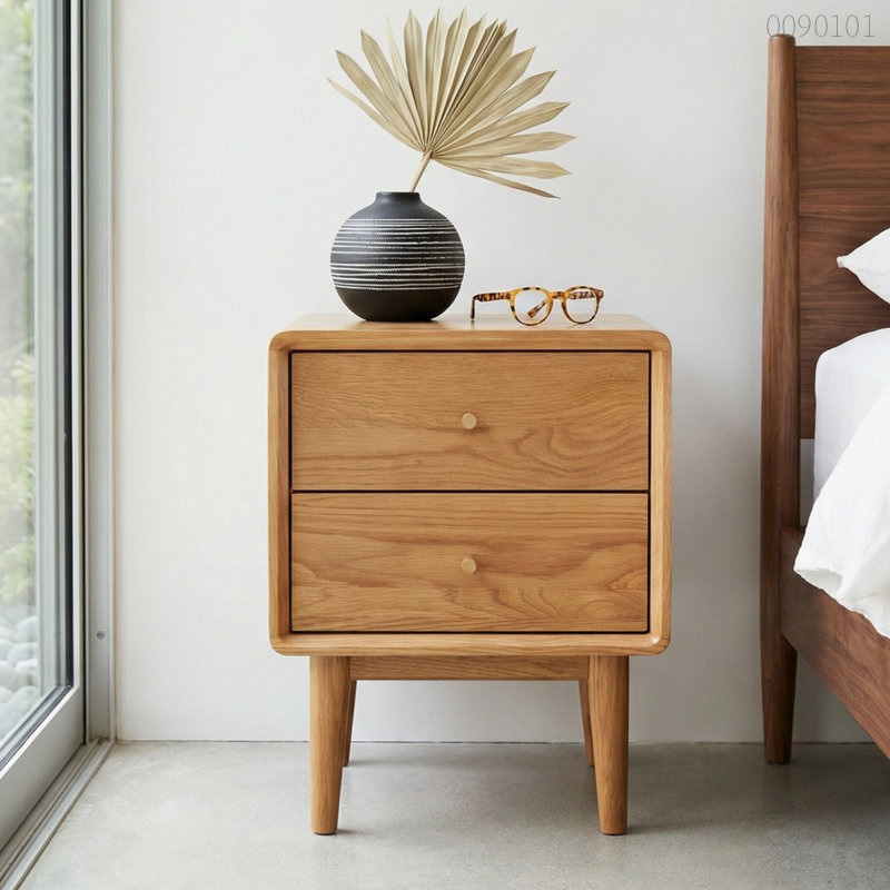Tủ kê đầu giường Mina sử dụng gỗ sồi tự nhiên nguyên khối cho các bộ phận chịu lực chính, kết hợp kỹ thuật ghép mộng đảm bảo độ ổn định và hạn chế tối đa cong vênh.