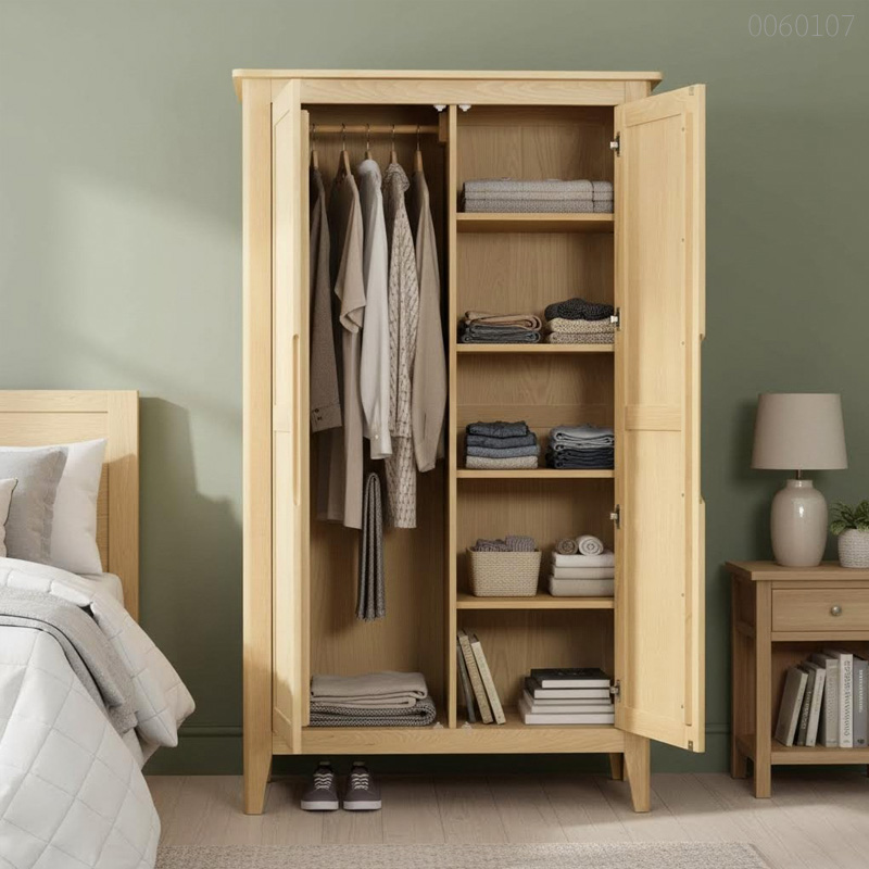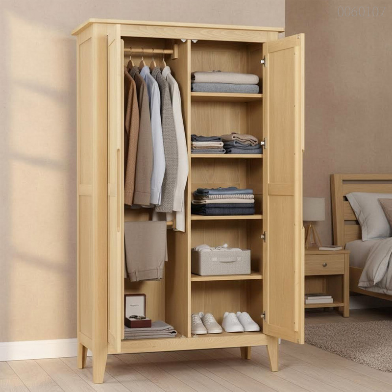 Hệ chân vát gỗ sồi đặc được liên kết mộng chắc chắn, đảm bảo chịu tải toàn bộ thân tủ và quần áo nặng mà không bị rung lắc hay biến dạng.