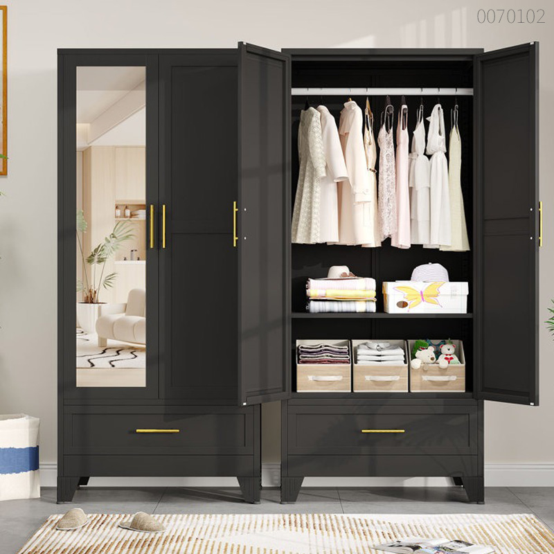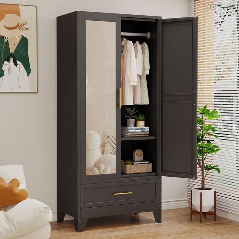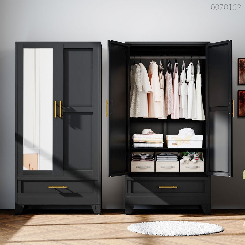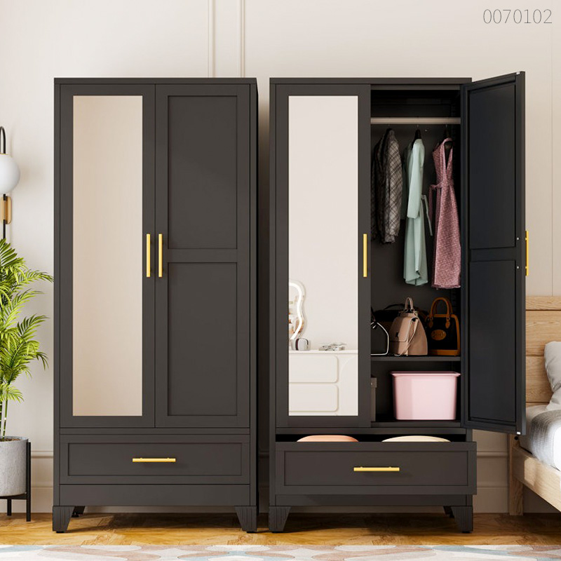 Sự kết hợp giữa gương soi tiện lợi và tay nắm vàng đồng của tủ quần áo sắt Win giúp góc thay đồ của bạn thêm phần cao cấp. Ngoài dòng tủ tích hợp gương này, Instock còn cung cấp những mẫu tủ sắt đựng quần áo đa năng với nhiều tiện ích độc đáo khác.
